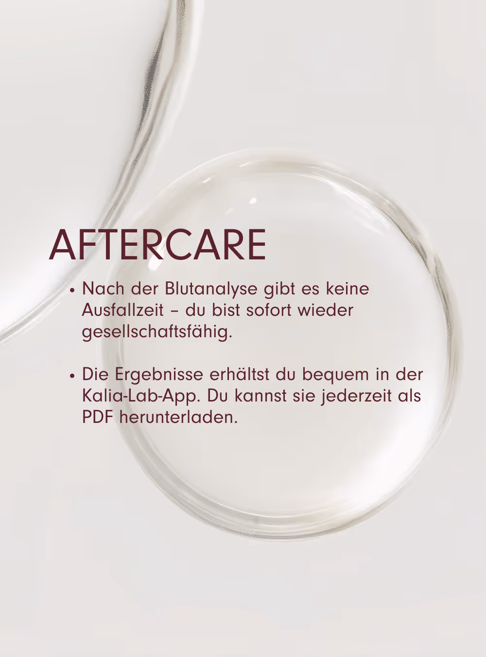 Deine Werte werden in einem spezialisierten Labor analysiert. Die Ergebnisse erhältst Du bequem über die Kalia Lab App. Du kannst sie jederzeit als PDF aus der App herunterladen und mit Deinem Hausarzt besprechen.