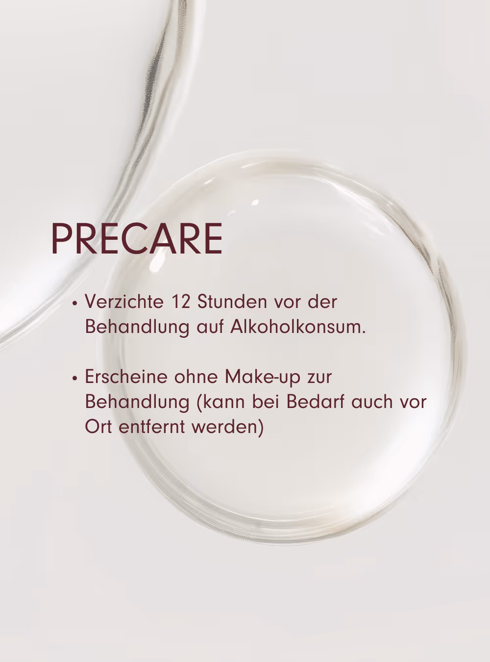 - Erscheine ohne Make-up zur Behandlung (kann bei Bedarf auch vor Ort entfernt werden).