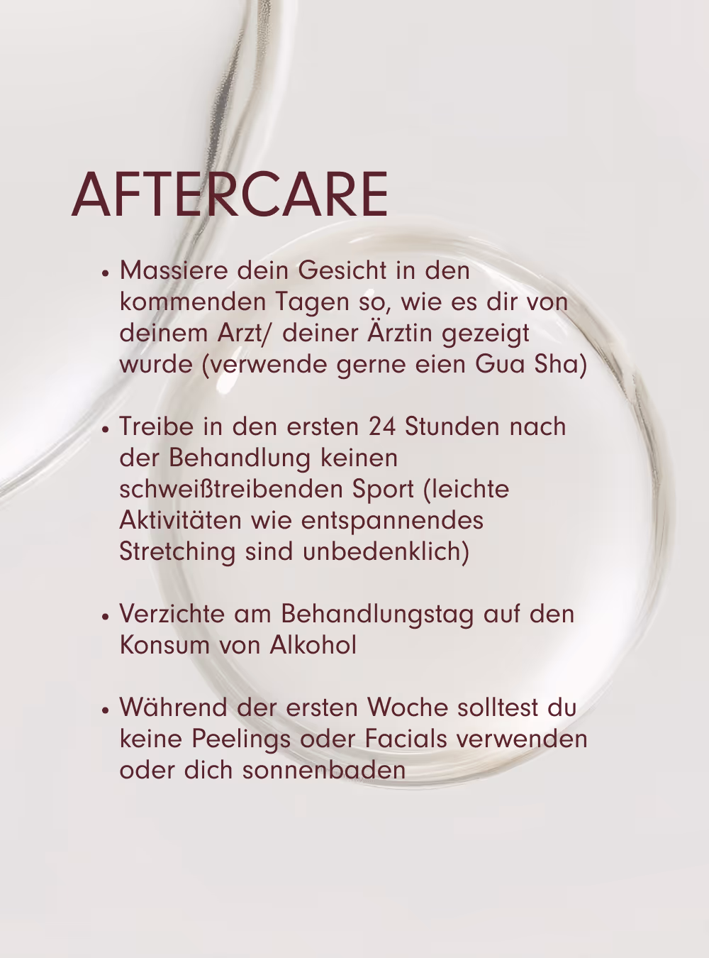 - Massiere in den nächsten Tagen dein Gesicht so, wie es dir von deinem Arzt/deiner Ärztin gezeigt wurde. Gerne kannst du dafür auch einen Gua Sha verwenden.