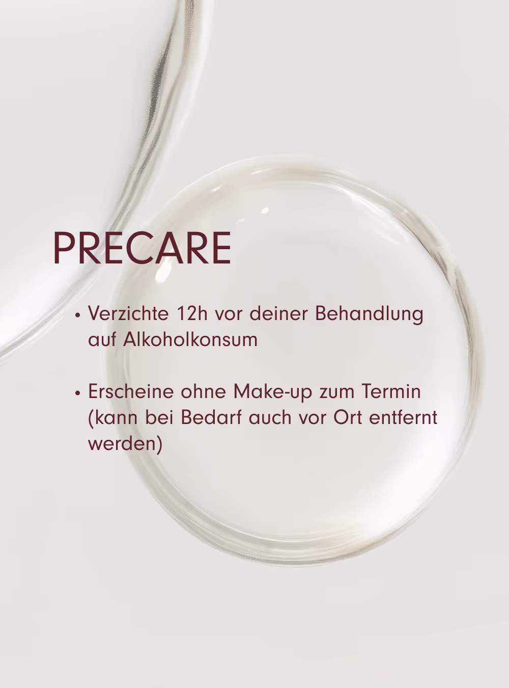- Erscheine ohne Make-up zur Behandlung (kann bei Bedarf auch vor Ort entfernt werden).