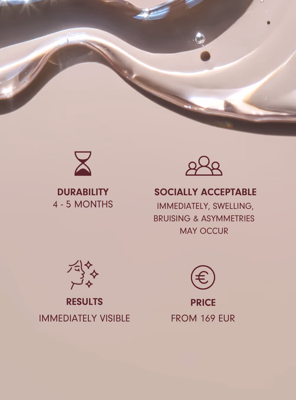 Depending on your facial expressions, metabolism, lifestyle and individual goals, we recommend a fresh-up after 4-5 months.