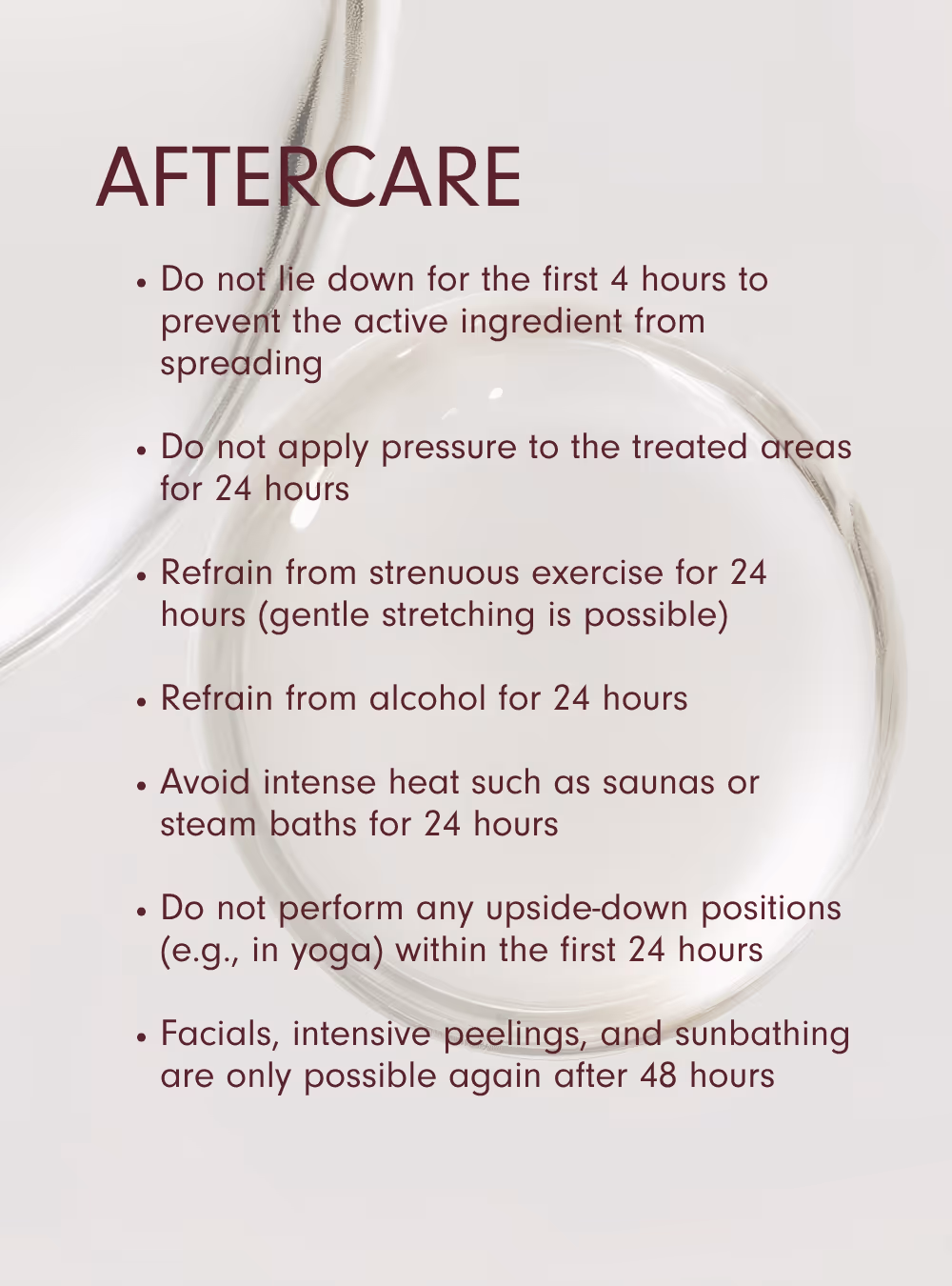 - Avoid intense heat for the next 24 hours (e.g. do not go to the sauna).