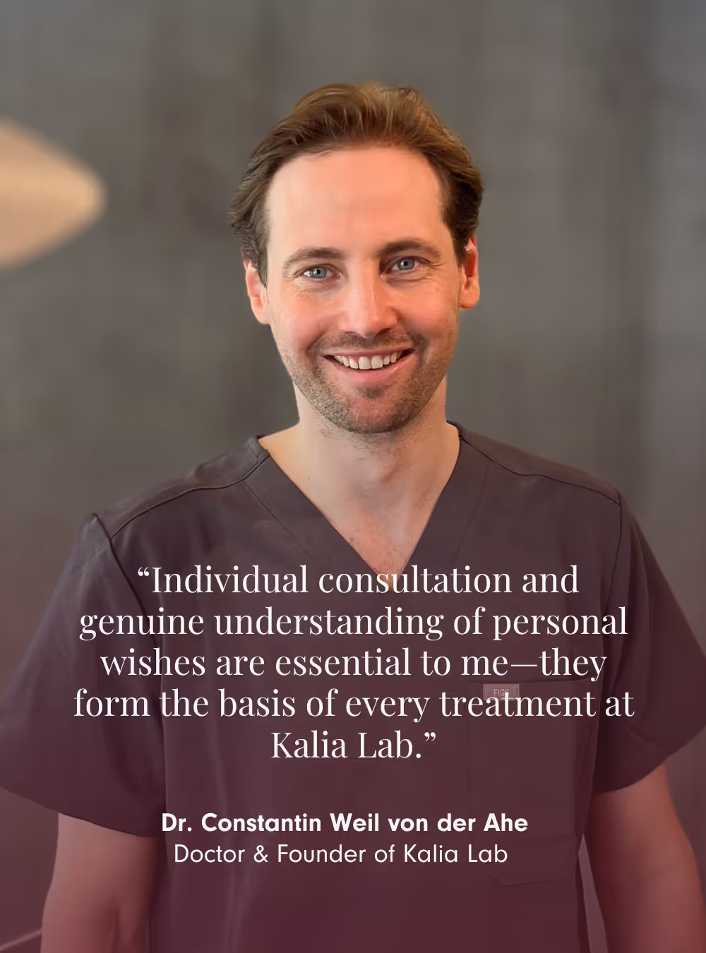 At Kalia Lab, you will only be treated by qualified doctors and skin experts who regularly attend further training courses and have completed training at the Kalia Academy.