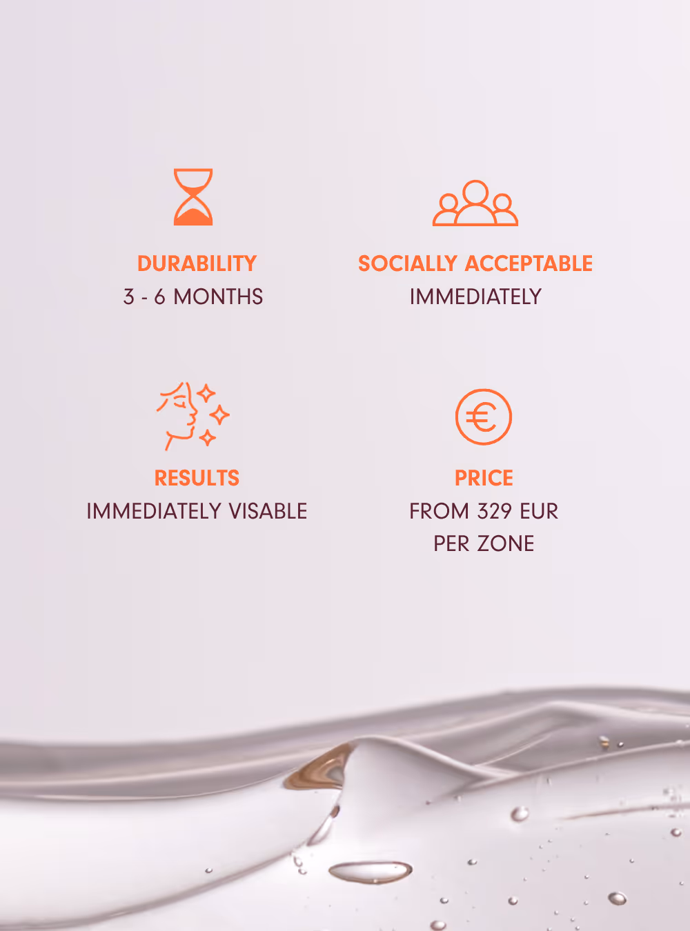 The results of a hyaluronic acid treatment are immediately visible and less invasive. You will quickly be fit for social life again.