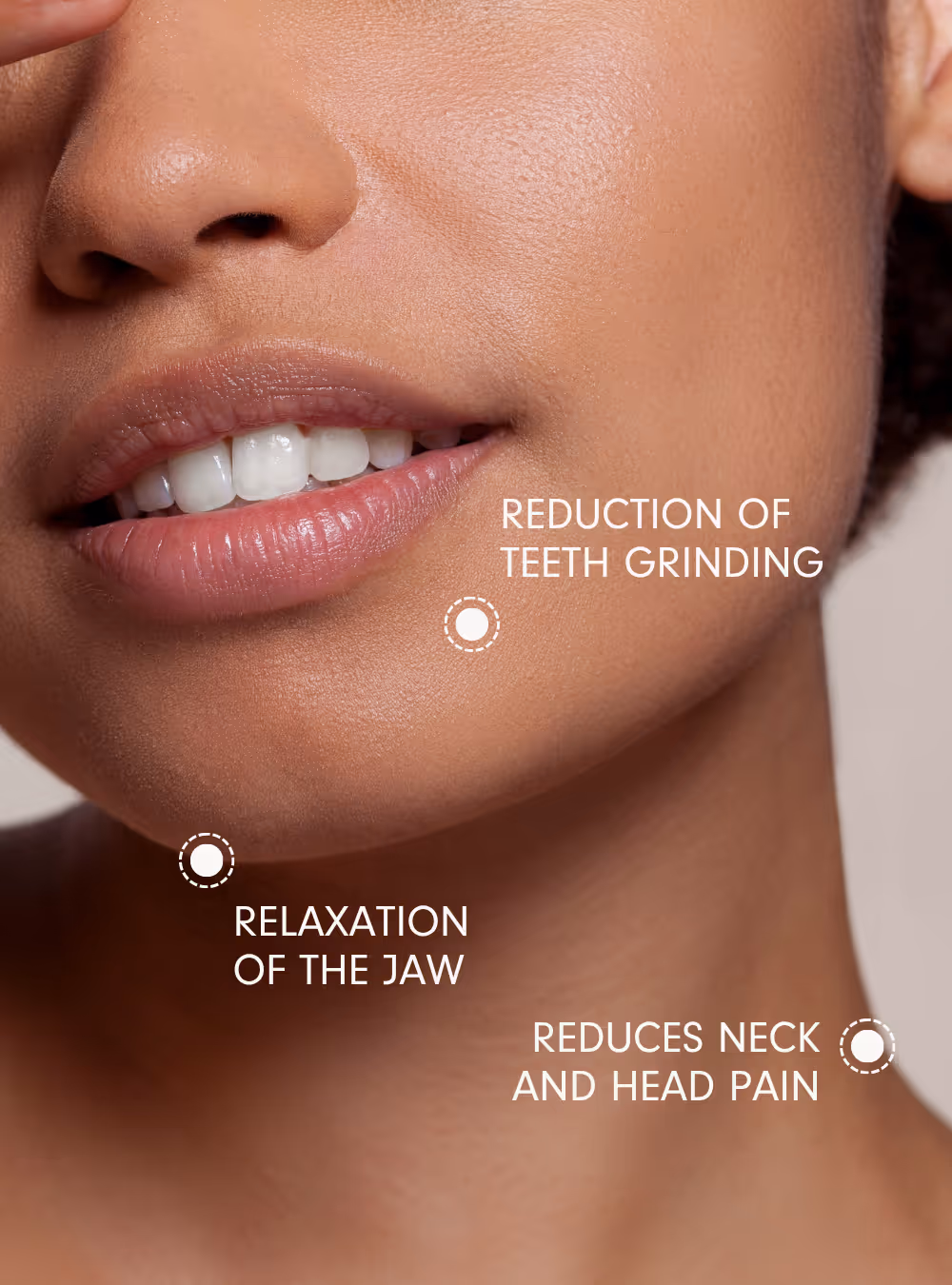 Reduces night-time teeth grinding through targeted muscle relaxation.