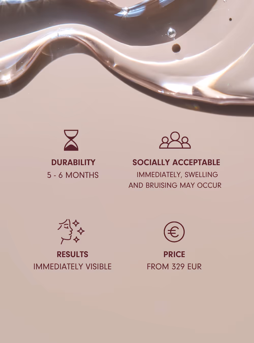 The results of a hyaluronic acid treatment are immediately visible and less invasive. You will quickly be fit for social life again.