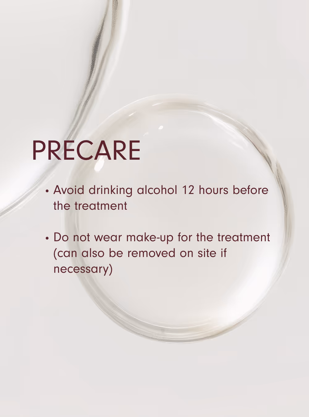 - Avoid drinking alcohol 12 hours before the treatment.