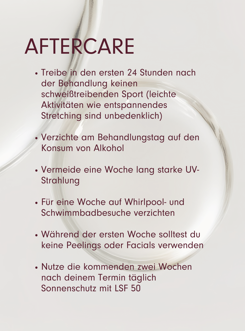 - Do not wear make-up for the treatment (can also be removed on site if necessary).